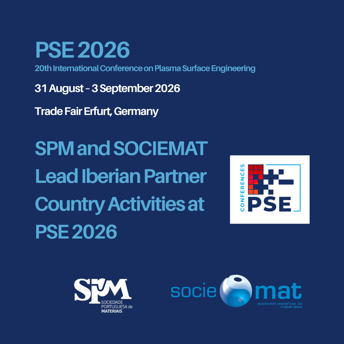 PSE 2026 will feature a dedicated Iberian symposium, a plenary lecture by Prof. Agustín Rodríguez González-Elipe, and dedicated exhibition space for Iberian companies, highlighting the strong contribution of FEMS member societies SPM and SOCIEMAT.